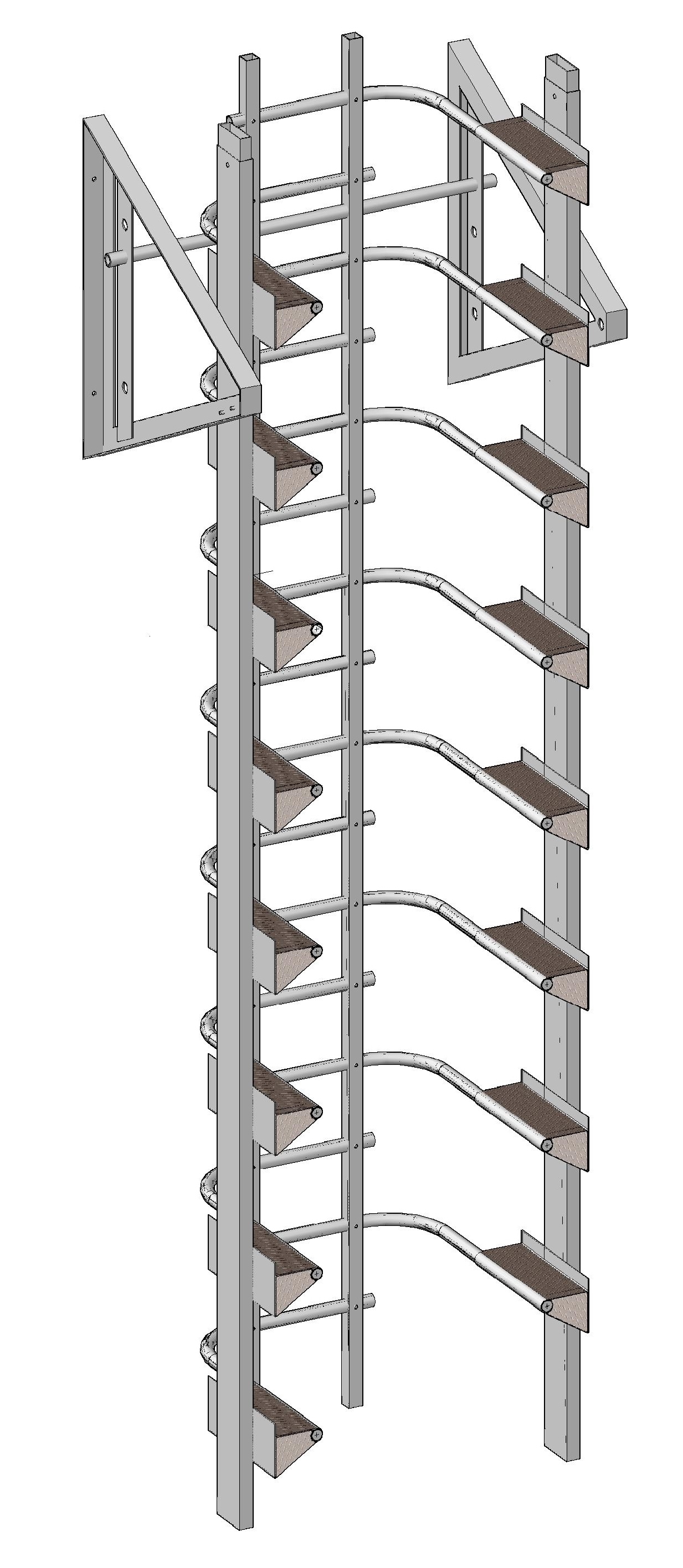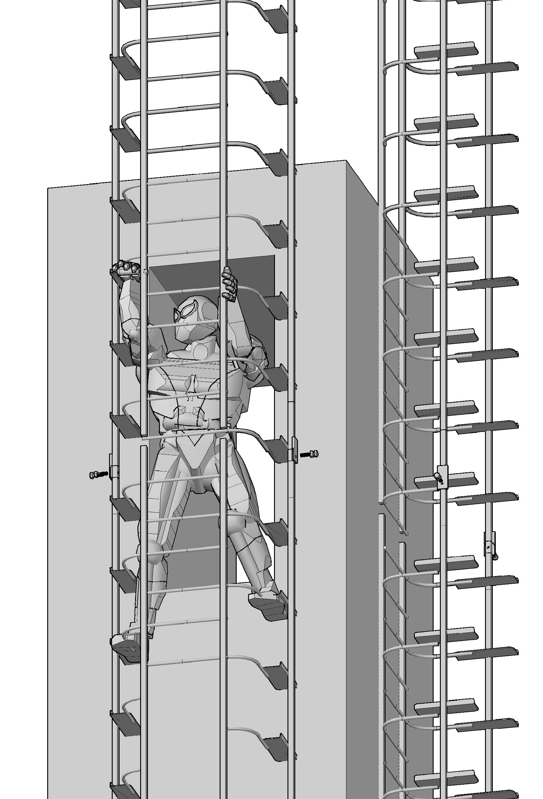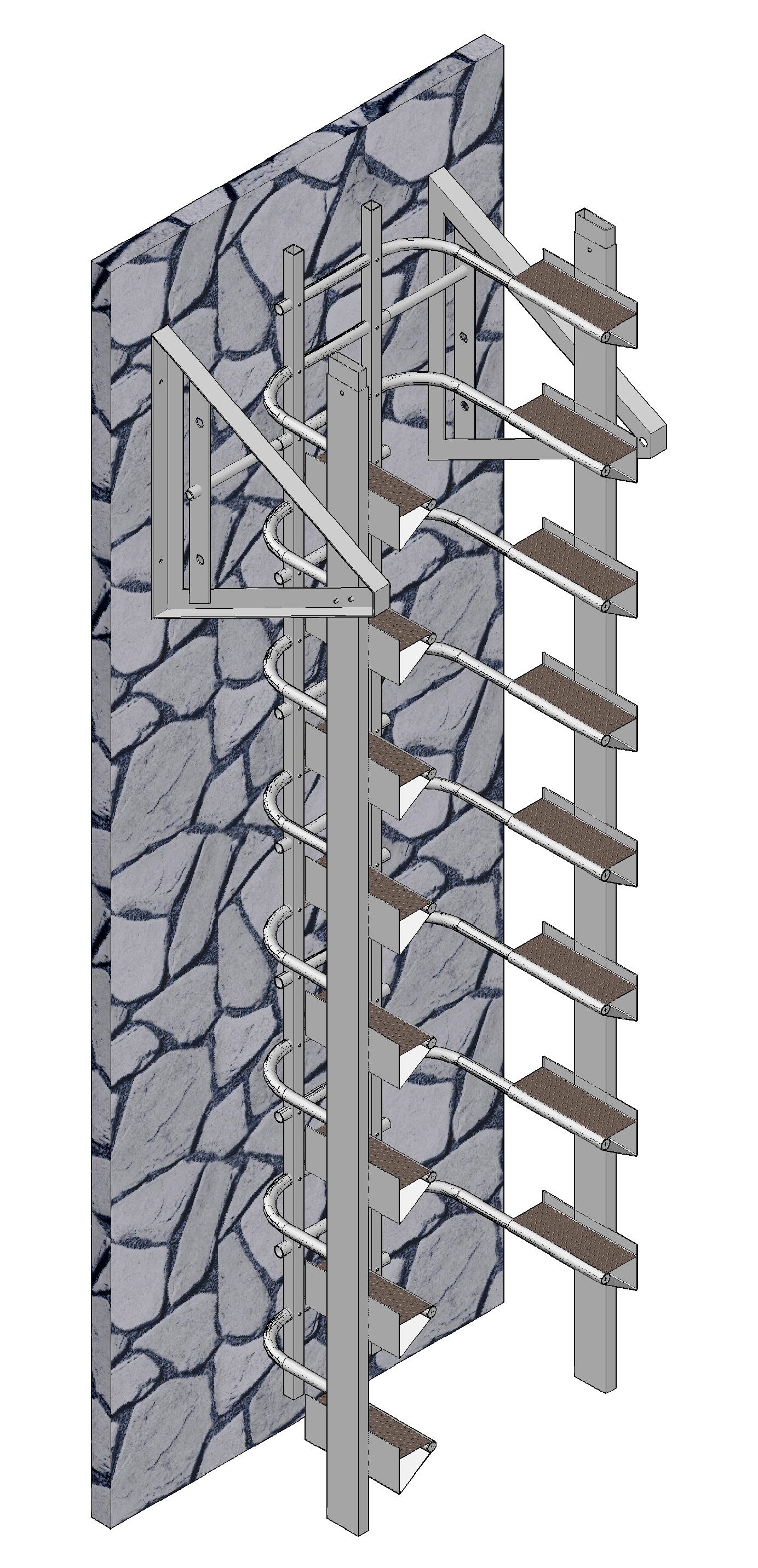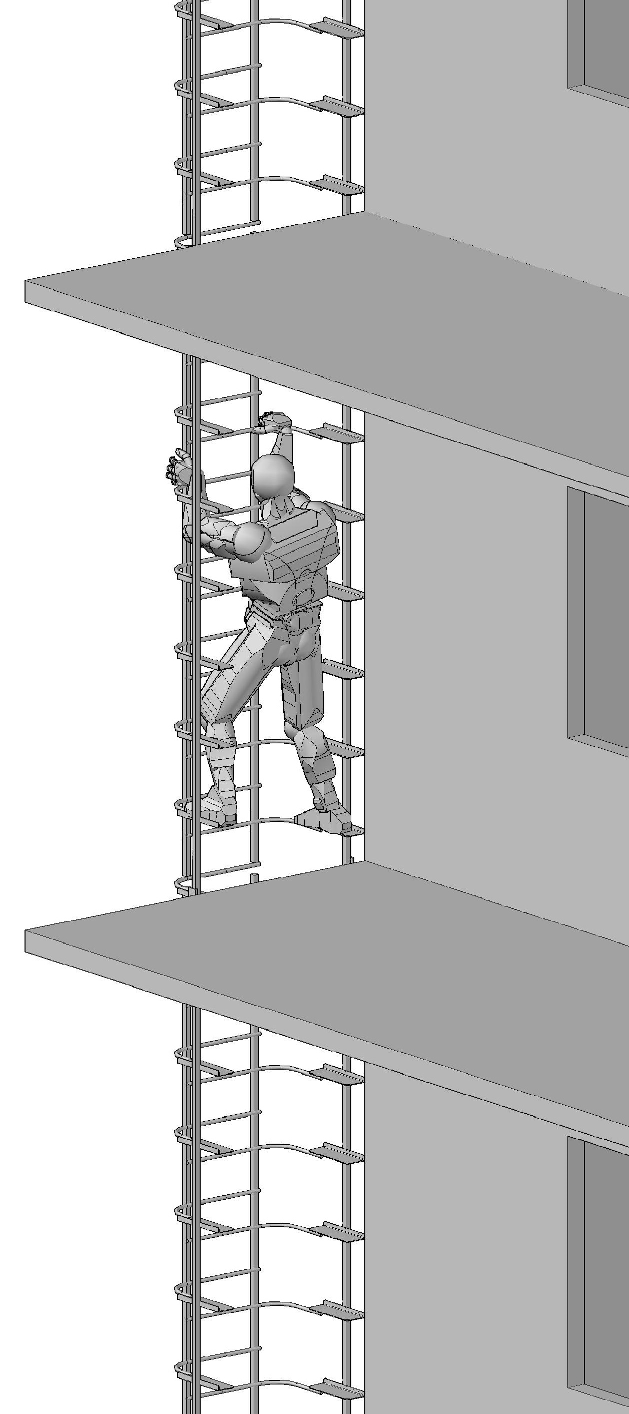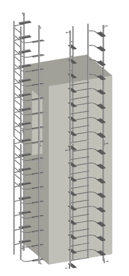 DESCRIPTION - Very easy to climb - like climbing stairs. Rest platforms are not needed. Fall arrest rails are inbuilt [and uninterrupted by platforms]. |