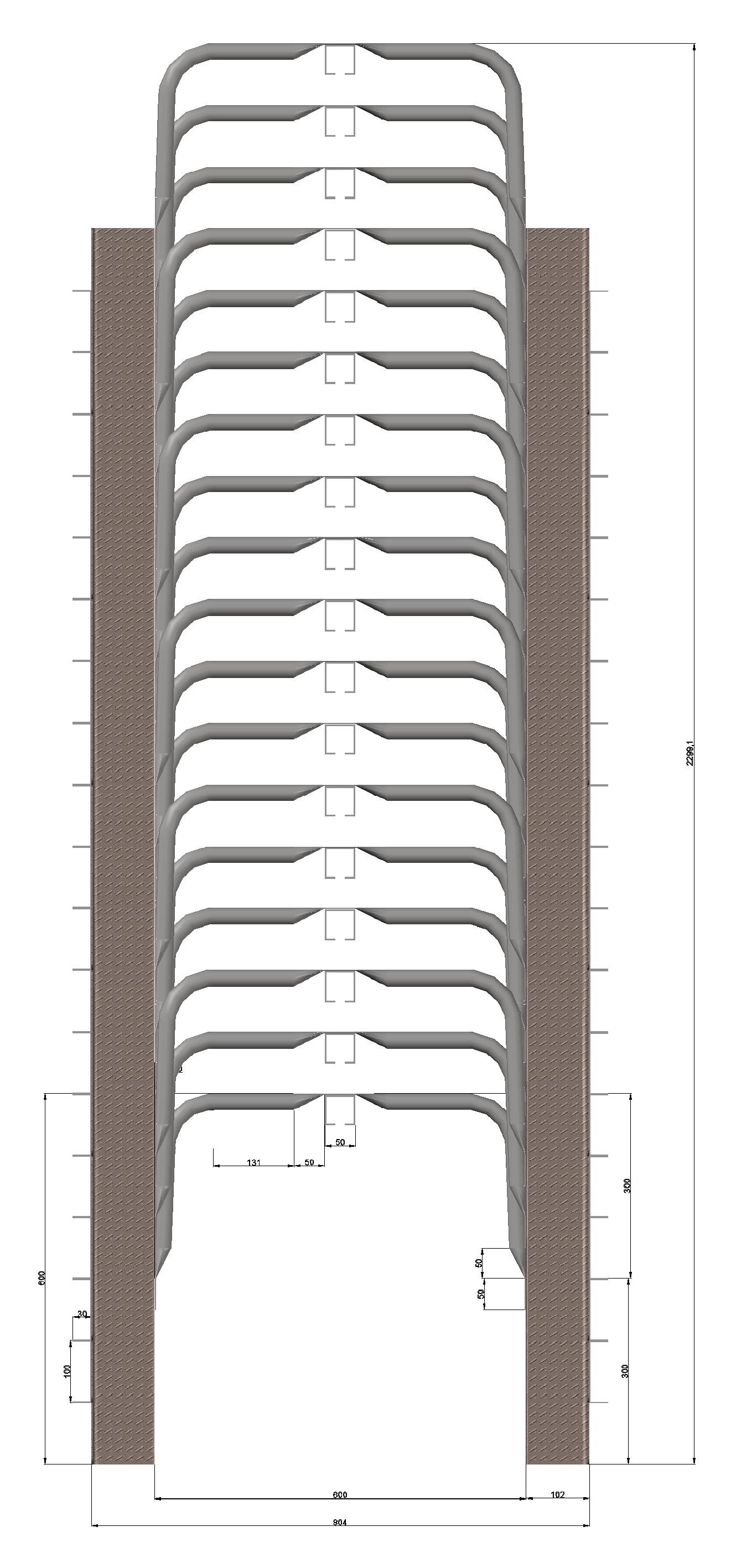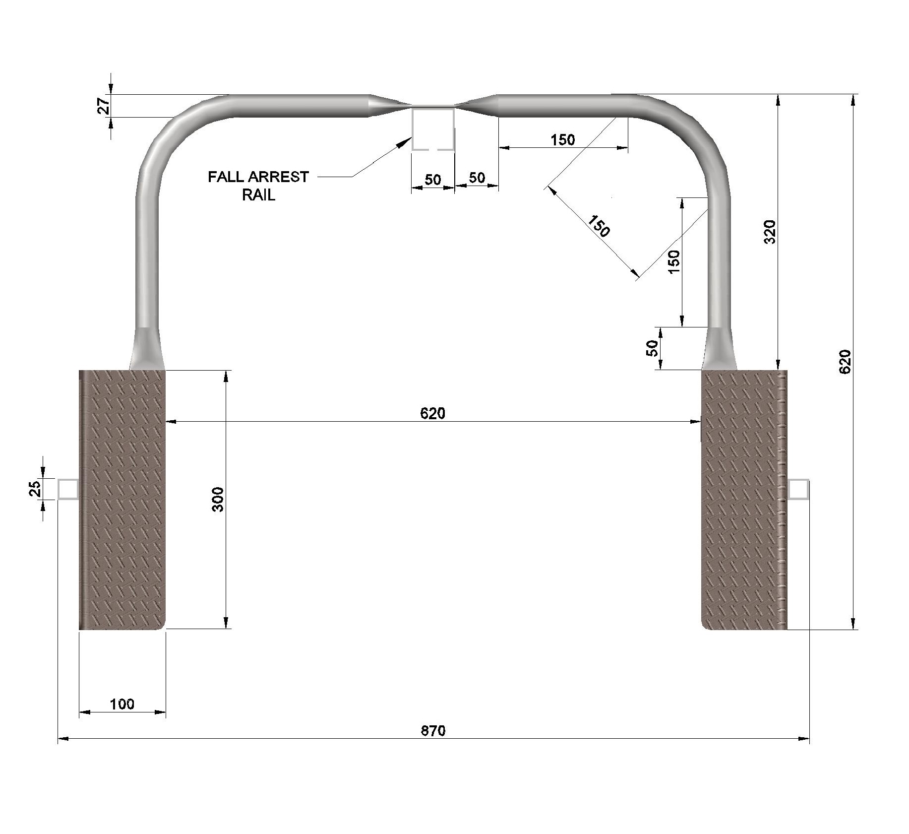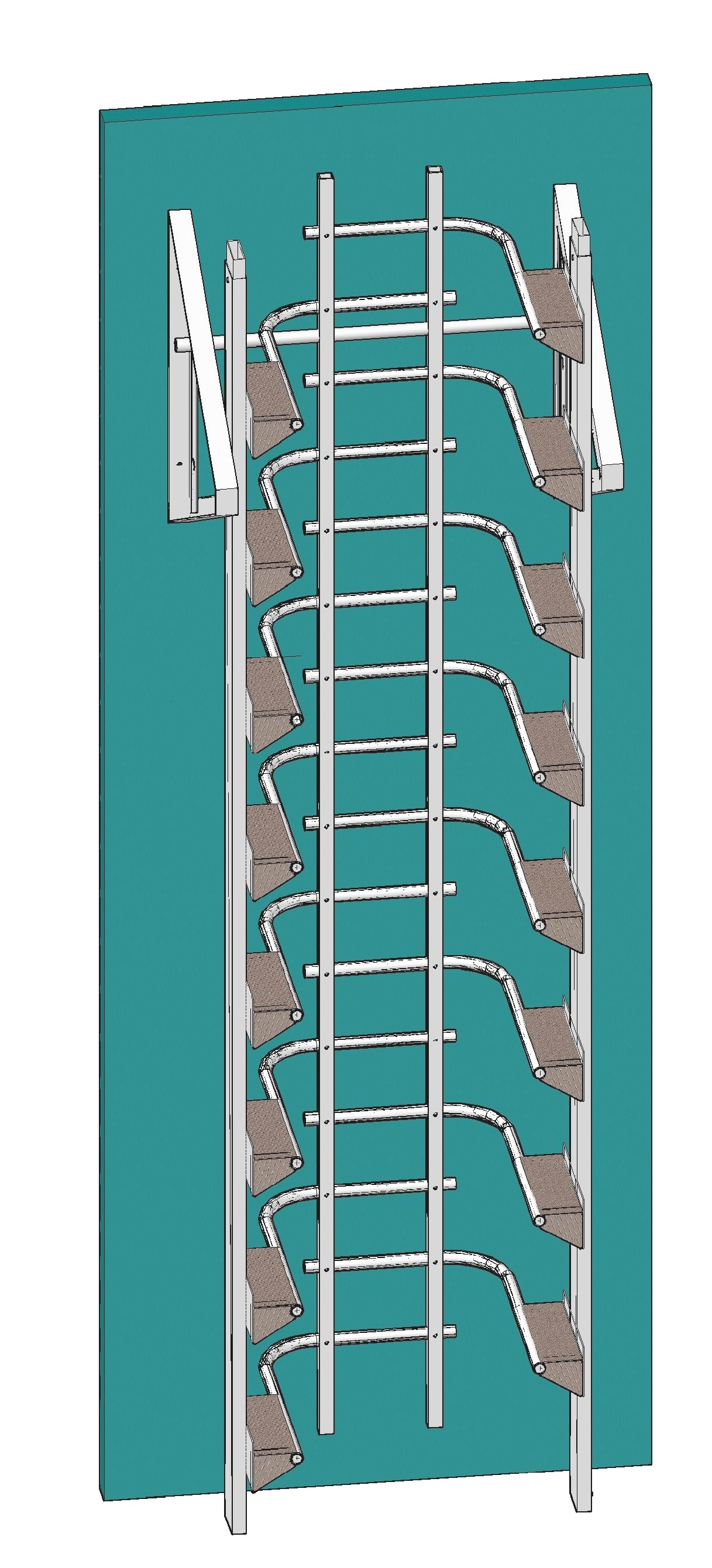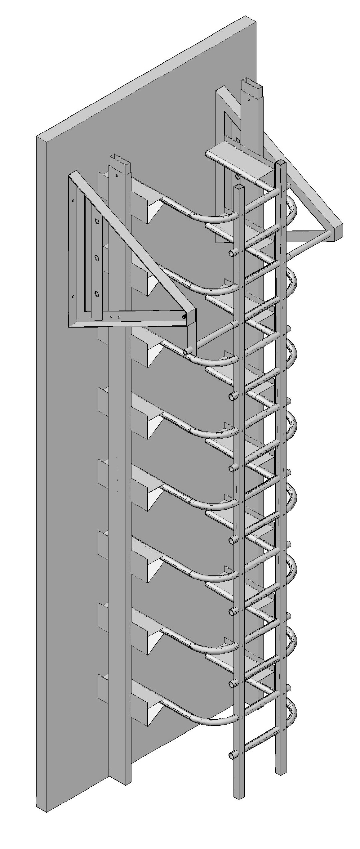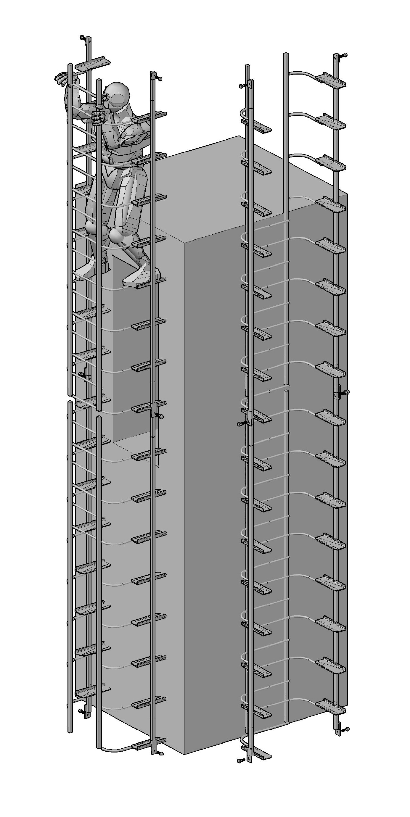 DESCRIPTION - Very easy to climb - like climbing stairs. Rest platforms are not needed. Fall arrest rails are inbuilt [and uninterrupted by platforms]. |
