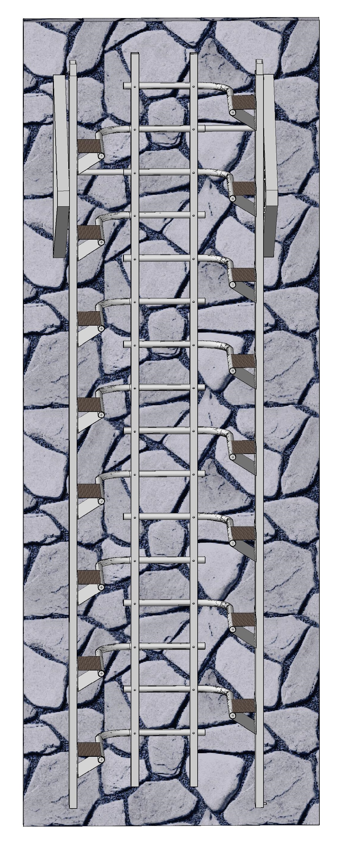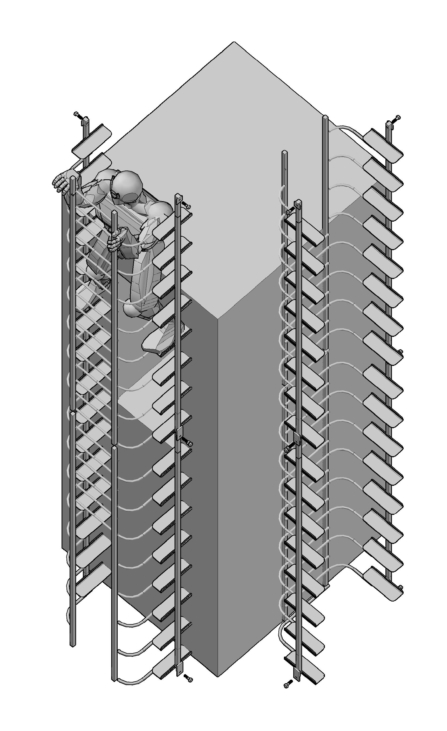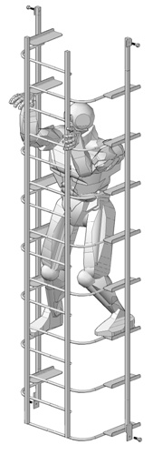 DESCRIPTION - Vastly safer than any vertical ladder in the world. The climber can actually let go with his hands - and just stand resting on the steps. |